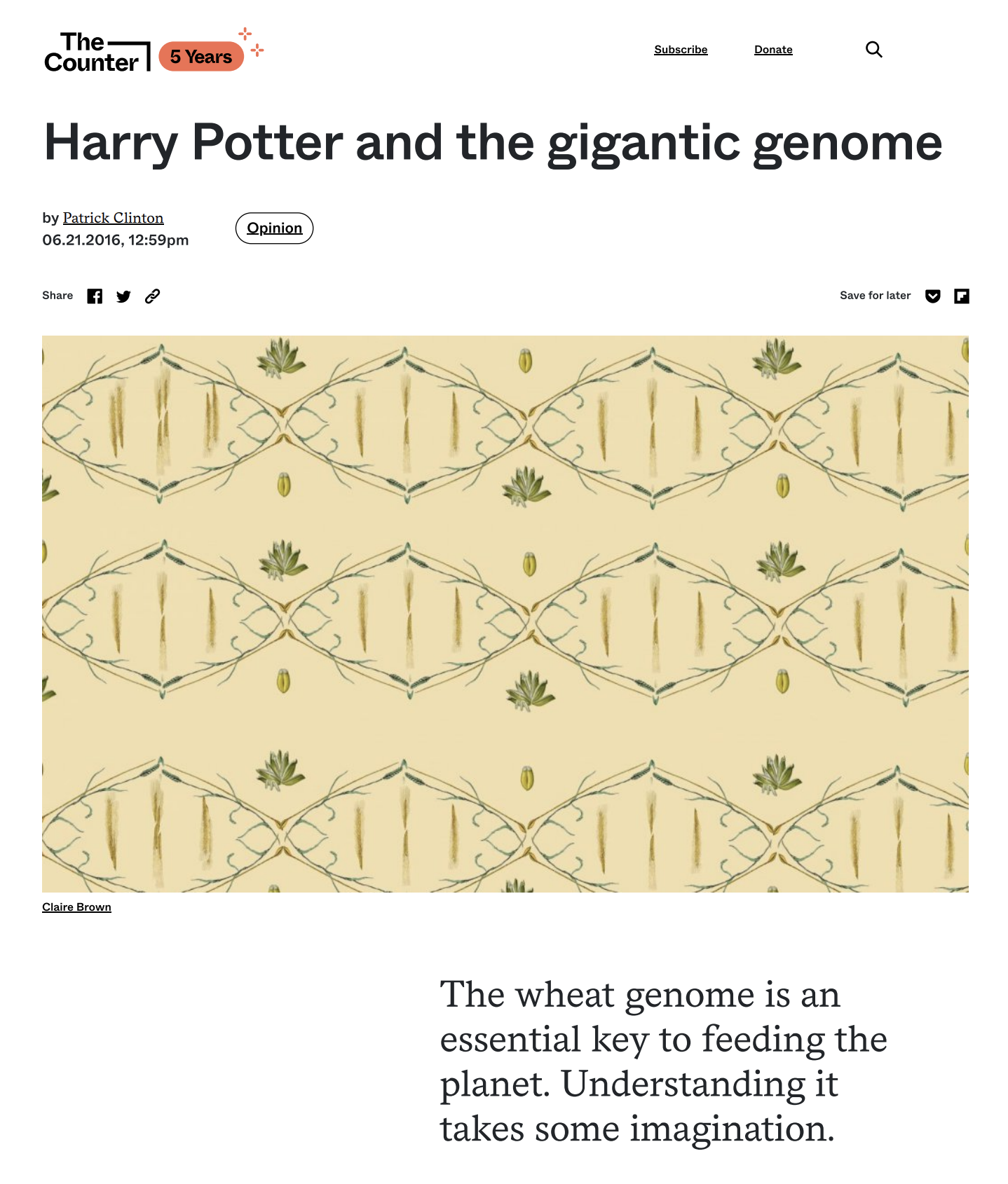 An article published on the website The Counter about the wheat genome and why its sequencing is so chalenging.